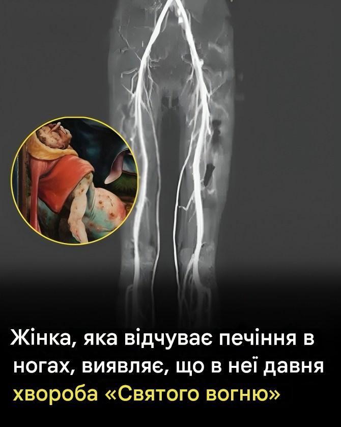 Після того, як вона протягом двох днів відчувала сильне печіння в ногах, 24-річна жінка звернулася до амбулаторної клініки. Відчуття поширювалося від пальців ніг до середини стегон. Її ноги почали знебарвлюватися, і їй було важко ходити. Лікарі, які її оглядали, помітили, що її ноги холодні на дотик. Вони також не могли знайти пульс у двох артеріях, які постачають кров до гомілок і ступнів. Що могло бути причиною цього таємничого поєднання симптомів? Лікарі дійшли висновку, що це рідкісний середньовічний стан, відомий як хвороба «Священного вогню».